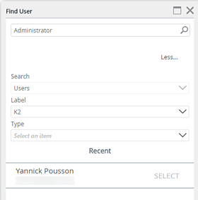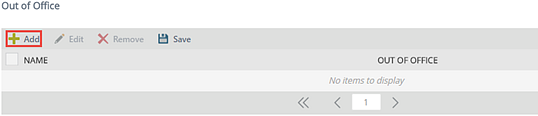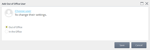 | Add | Opens the Select a user to add to the Out of Office list search page. Search for a person to add to the list and display the current out of office setting. |