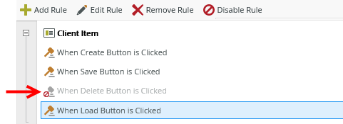 When you disable a rule, the text of the rule changes to gray and the icon shows that you cannot edit the rule. When you enable the rule, the standard icon is shown and the text changes to black.