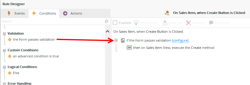 Validation Conditions The Form passes validation Check if all required fields on the form pass validation, then execute the Create or Save method.
