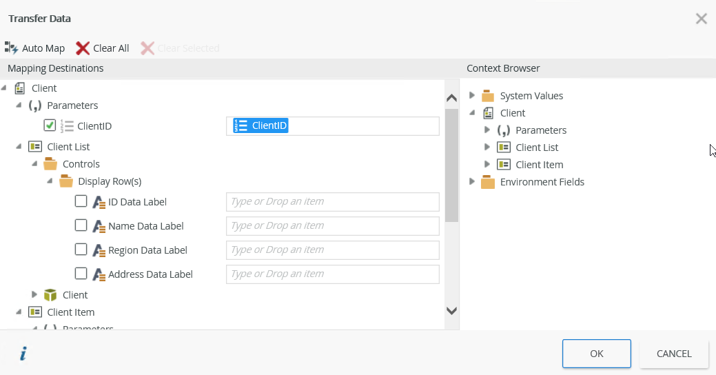 | Rule Interaction | Execute a server rule | When the server loads a Client form, then execute the When the server loads Region Item View server rule. |