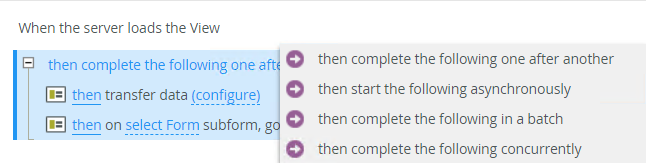 - When you use server load rules, you can choose from the execution types as shown here. However, when the rule executes (on the server), actions are always processed sequentially (then complete the following one after another).