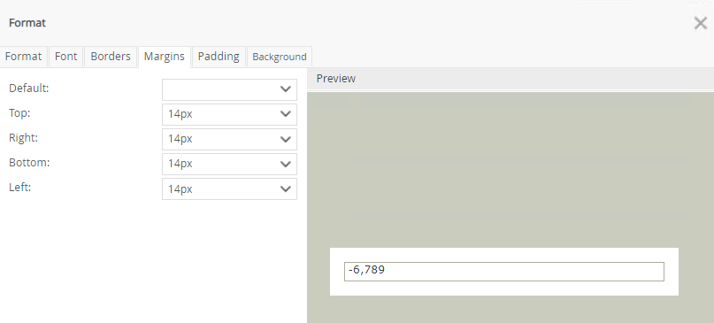 You can adjust each label or cell margin by setting left and right indents and spacing before and after the text. The example below shows an indent of 14 pixels applied to the top, right, bottom and left of the cell: