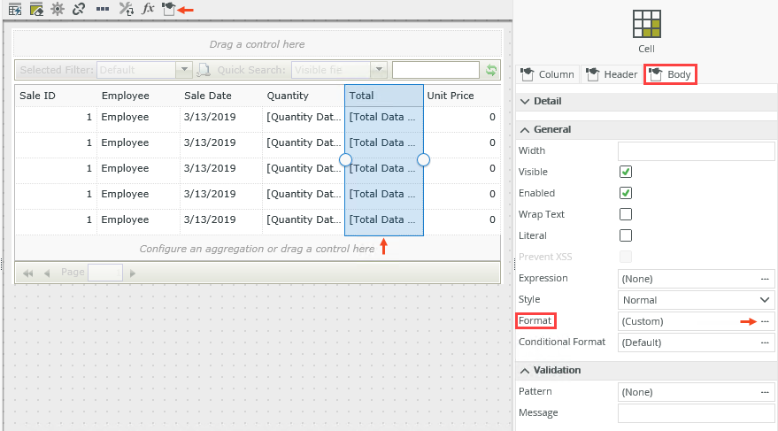 Select a column on the view and click the ellipsis next to Format in the Body tab on the right, or click the Edit Format icon in the toolbar as shown below.