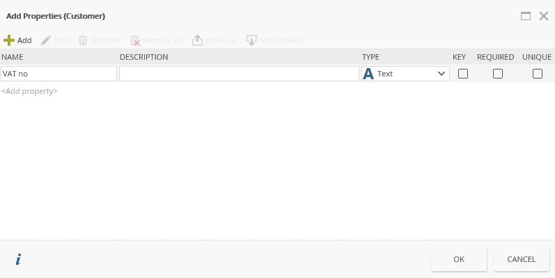| Add | Creates a line where you can add the property name |