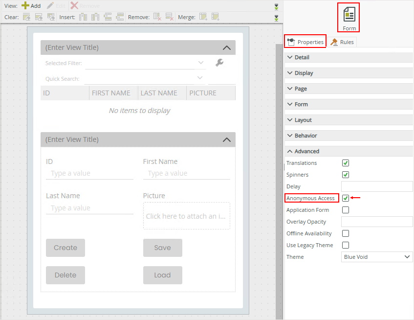 - When you use anonymous access on a view or form containing a File Attachment control, Image Attachment control, or Picture control, additional configuration settings are available that allow you to upload and download files using an anonymous access view or form. See the Considerations section of these control topics for more information.
