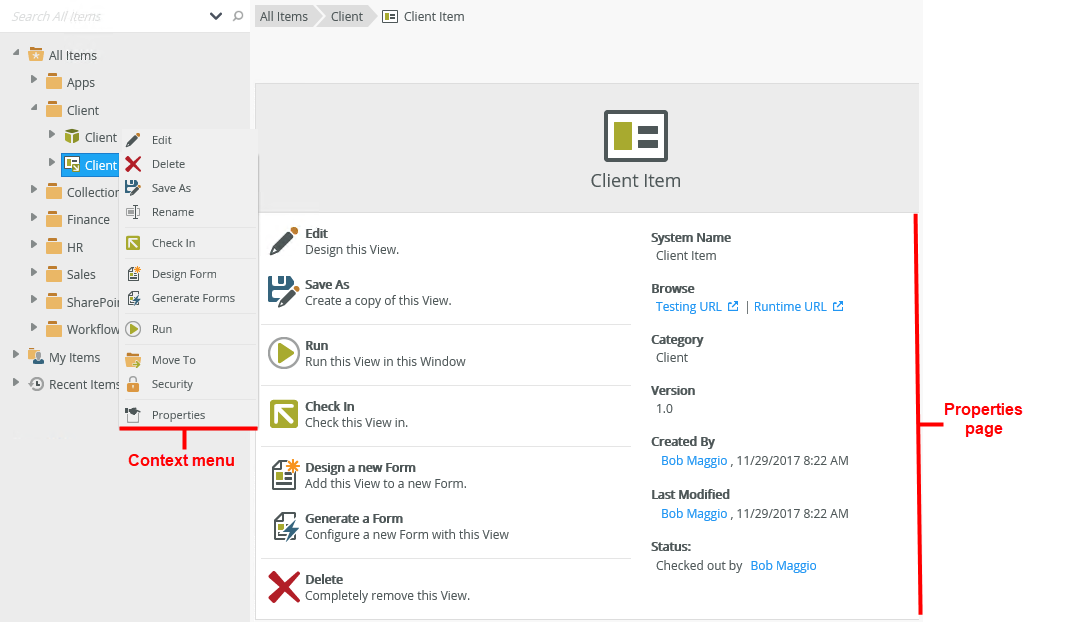 | Check Out | Checks the view out for you to edit | Click Check Out |