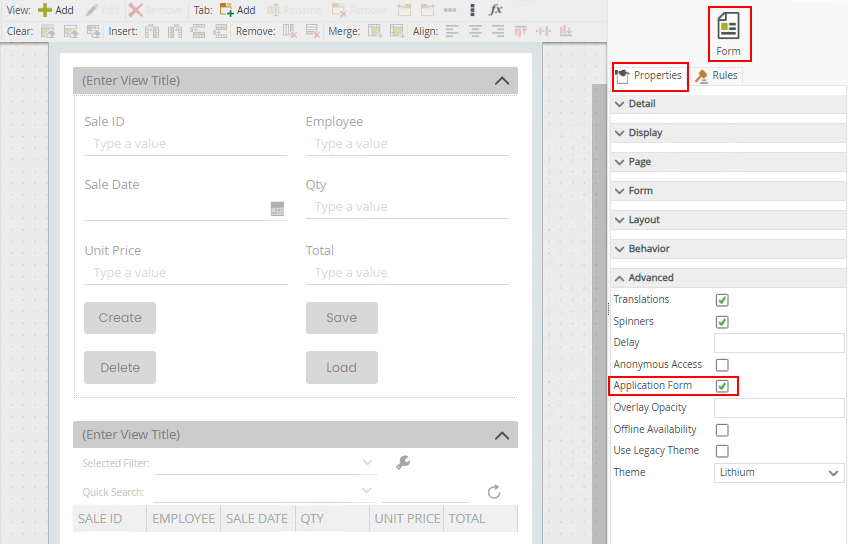 | Generate a Form | Automatically generates a form linked to the view | Click Generate a Form |