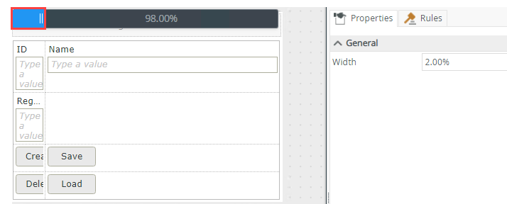 - When you set the Width property to a small percentage or pixel size, the column may appear wider in the designer - this allows you to select the column at design time. The column is sized correctly at runtime.