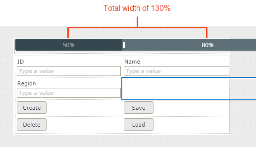 - We recommend that you use only one of the two resizing methods rather than combining manual values and using the resize widget, because doing so may result in the total width of all columns exceeding 100%, as shown below.