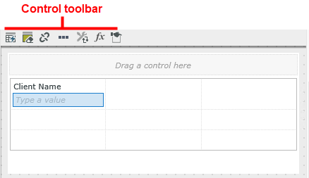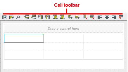 When designing views, you use the toolbar to configure controls and cells. The toolbar changes depending on what you have selected, and allows you to do things like create labels and controls, bind and unbind controls, change controls, configure expressions, change the style or format of a control, insert rows and columns, merge cells and more.
