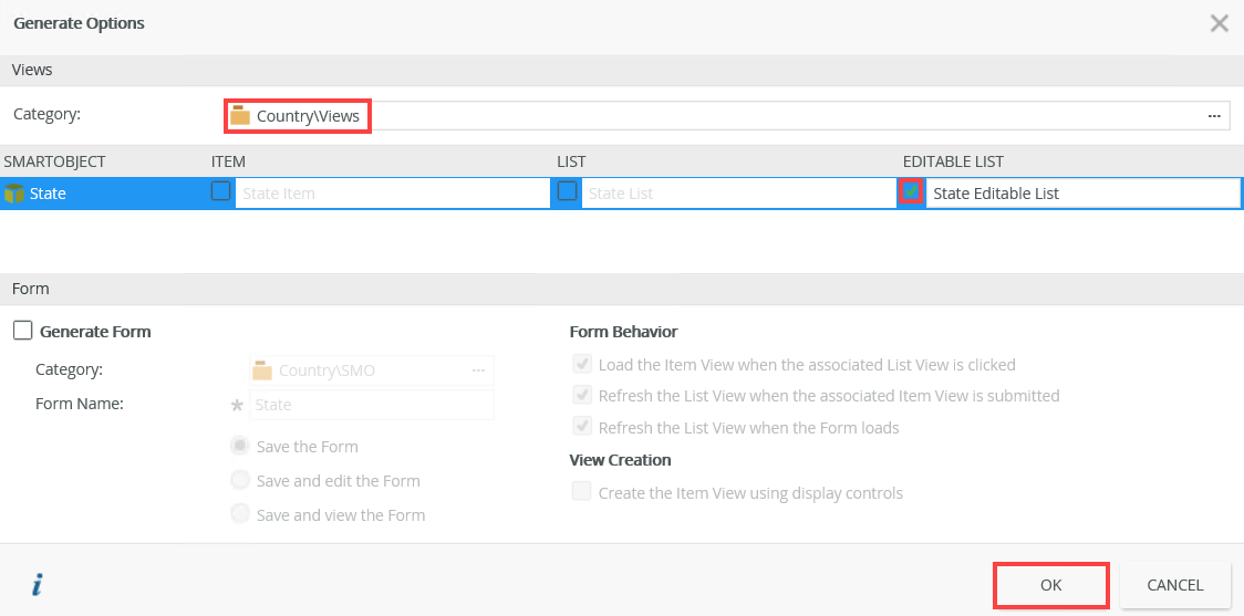 Generate Editable List views for all the SmartObjects.In this step, you generate editable list views for the State, County, and City SmartObjects.