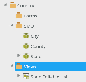 - Use the same steps to generate an Editable List view for the County and City SmartObjects. The editable list views show in the Views category.