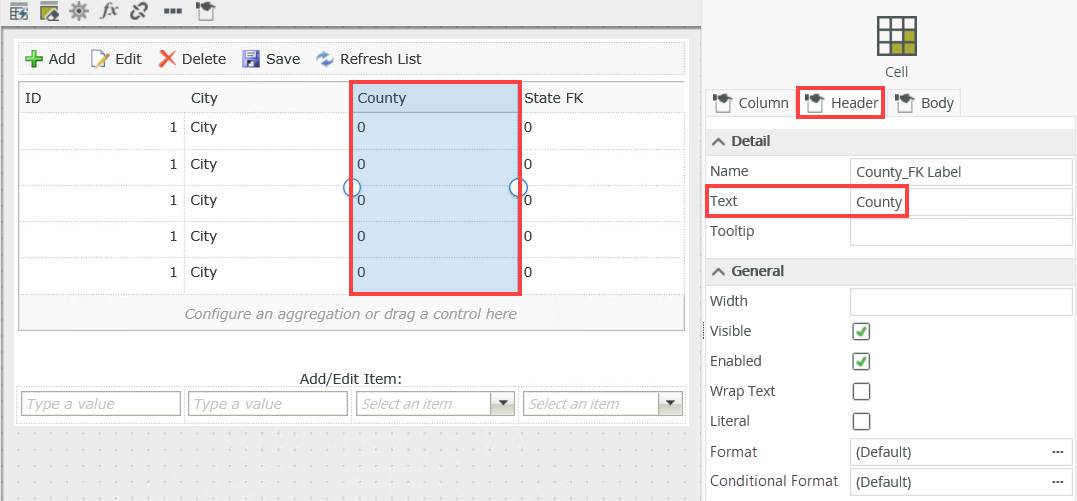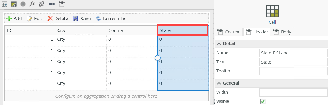 Apply layout changes to the City Editable List View.In this step, you change the column locations and the column headers.