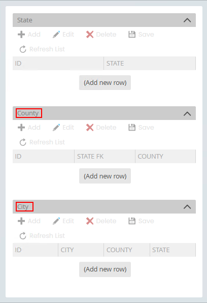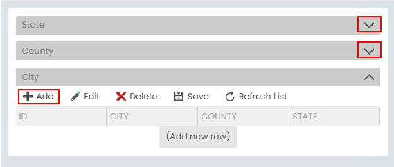 - In this example, you can collapse the State and County views to allow for more space on the form. In the City view, click Add.