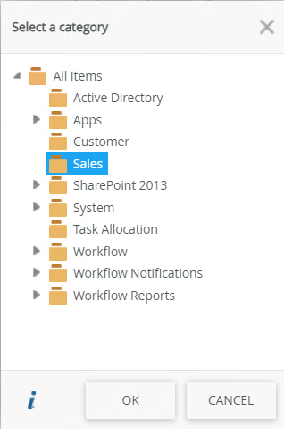 3. Select a Category for the view. In this example we created a new category called Sales.