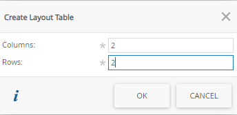 2. Configure your view table to have two rows and two columns. Click OK to continue.