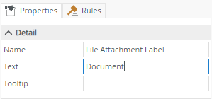 5. In the label Properties tab change the Name property to File Attachment Label.