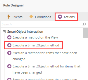 7. Select the Actions tab and click Execute a SmartObject Method.