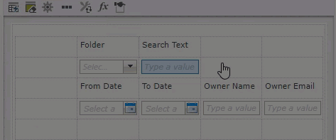 The following table explains the available options:Search Option Explanation Folder Use this drop-down to select the Folder property. Search Text Use this field to type additional details to refine your search. From Date and To Date Use the date fields to set a date parameter. Owner Name Use this field to specify a user within the DocuSign environment. Owner Email Use this field to specify a user email within the DocuSign environment. - Select and type values to build your search, and then click the Search button.