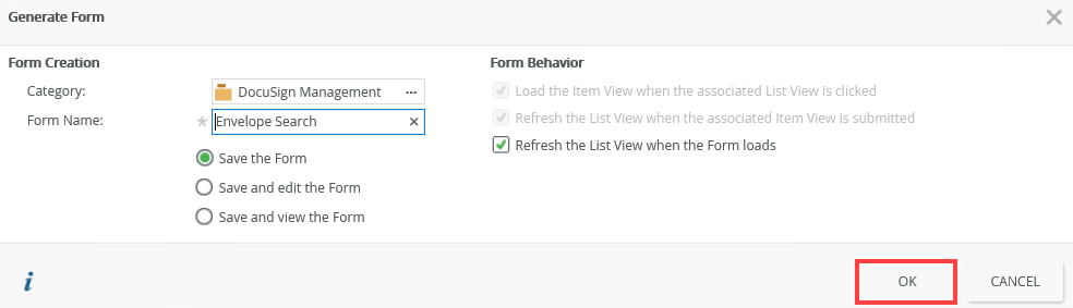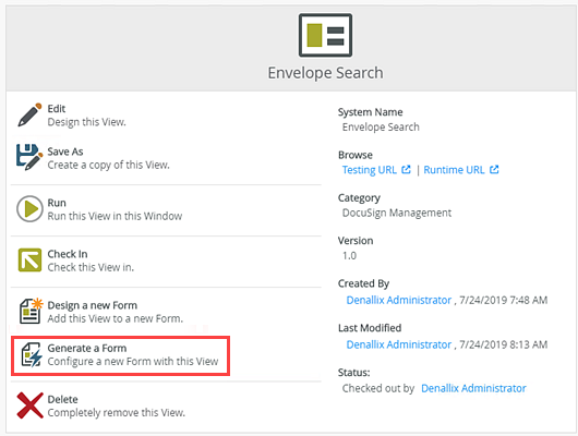 - With the Envelope Search view selected, click Generate a Form.