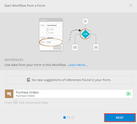 2. The Start Workflow from a Form page shows. Click Next.