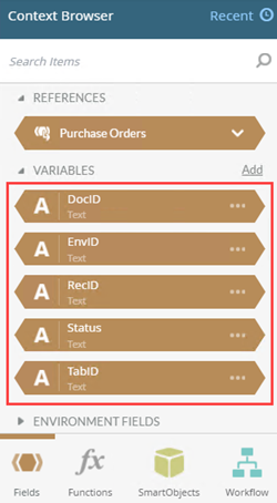 7. Click the expand / collapse toggle to expand the Context Browser. From the Variables section, click Add.