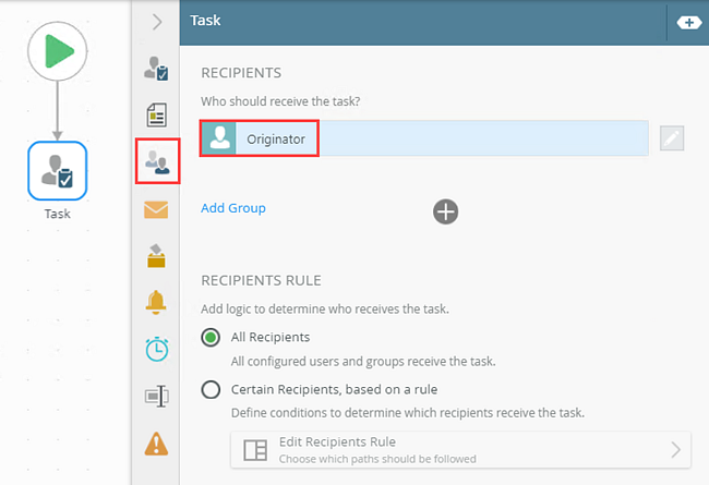 12. Select the Recipients tab. Ensure that the Originator is the recipient. If not, add them.