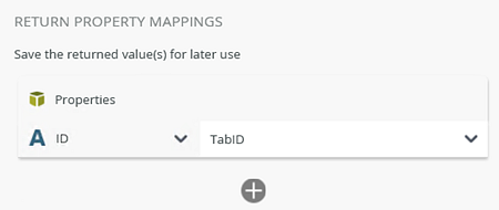 7. Configure the Return Property Mappings. Click the add button and add the ID property. From the menu select TabID.