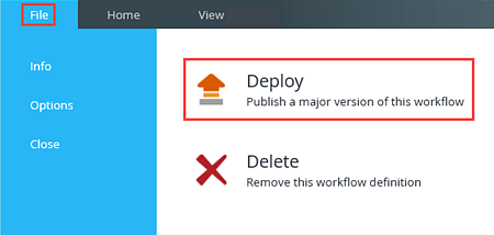 1. After successful deployment, click File and Close to close the workflow and exit the Workflow Designer.