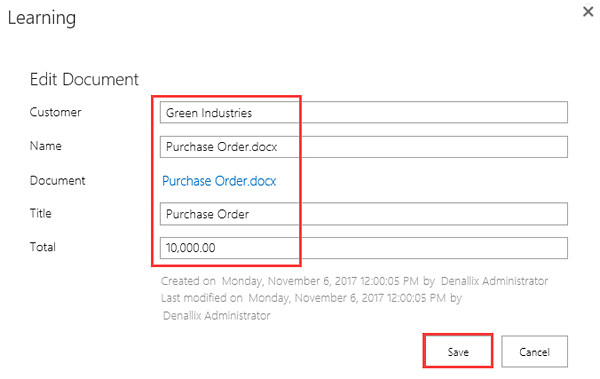 1. Create a SharePoint Custom Library that contains purchase order properties and add custom columns Customer (text) and Total (number) to the library. You also integrate the library with K2 for SharePoint.