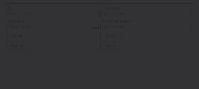 - Run the Orders Item view and create at least two order records. Enter an Order Title and select a Customer from the drop-down list. Enter a Customer Name, but make it slightly different from the Customer drop-down list. (When you test the view by loading an order record, using a slightly different value for the initial load will make it easier to see which items are loaded from the Orders SmartObject and which list item values are loaded from the Customers SmartObject.) Click Create. Repeat this step and add a second order with the Customer Name slightly different than the Customer drop-down list selection.