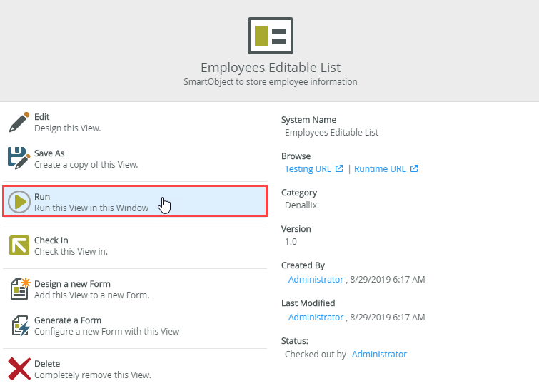 - Generate an Editable List view of the Employees SmartObject.