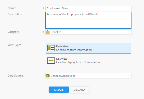 - On the Employees SmartObject page click Design a new View.