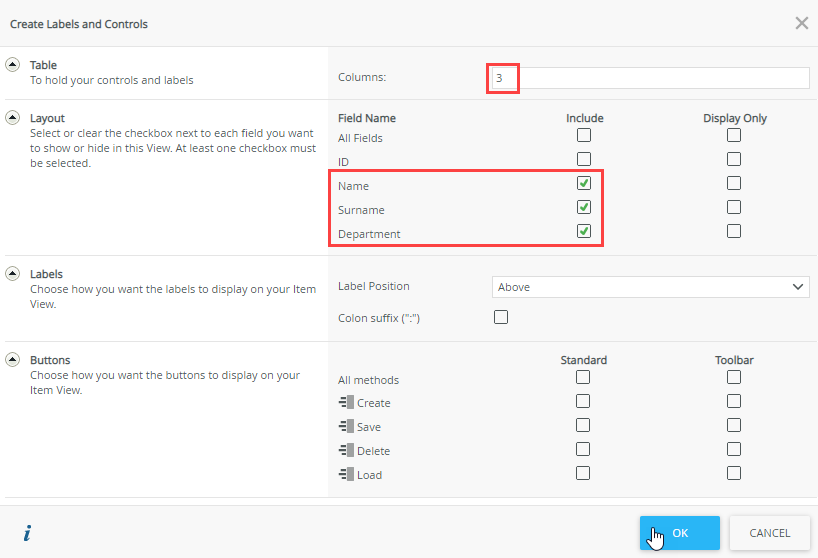 - Click Create Labels and Controls.