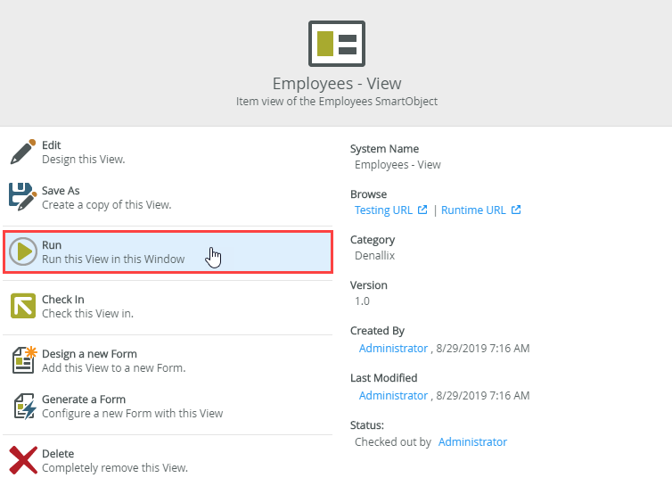 - On the Employees - View page click Run.
