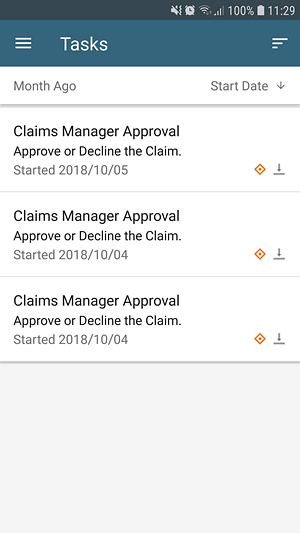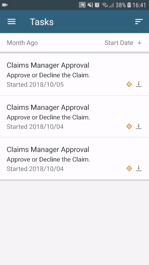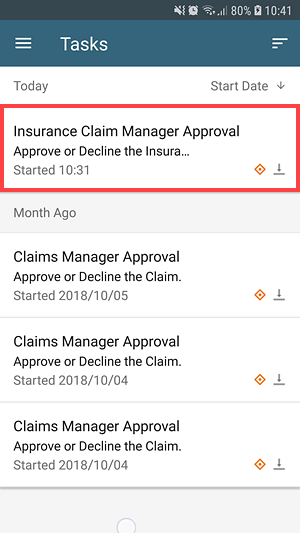 - Bob signs in to the Workspace app and sees a new Insurance Claim Manager Approval task in his Tasks. Open the task.