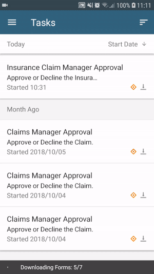 In this scenario you create an Insurance Claim form that allows customers to submit an insurance claim. They can save the claim form as a draft and submit it at a later time. Once submitted, the claim form is sent to a claims manager for approval. The claims manager can also save the task form as a draft and complete at a later time. The insurance claim is done using an application form available in the Workspace (Mobile) app. In this scenario, Codi submits the claim and Bob approves it.