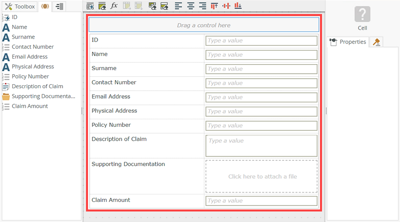 Click Finish.Property Name Type Key Required Unique ID Autonumber Yes No Yes Name Text No No No Surname Text No No No Contact Number Number No No No Email Address Text No No No Physical Address Text No No No Policy Number Number No No No Description of Claim Memo No No No Supporting Documentation File No No No Claim Amount Number No No No