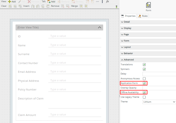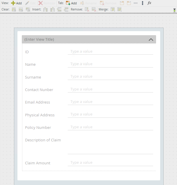 - Generate an form based on the Insurance Claim view.