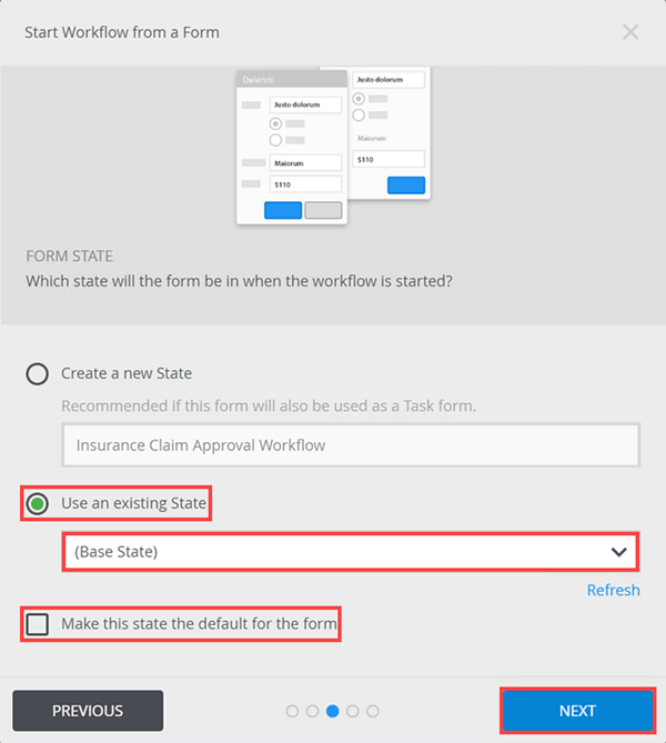 - Select the Create a new State option in the Form State section and name the state Workflow Task.
