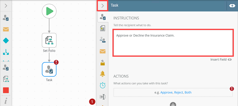 - Expand the Task step page and add an instruction.
