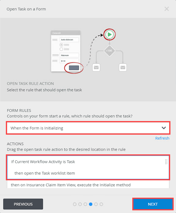 - On the Open Task on a Form page click Next.