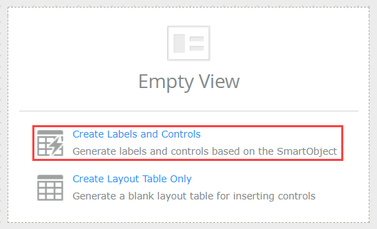 - Click Create Labels and Controls. This option allows you to pick which SmartObject properties you want as view controls.