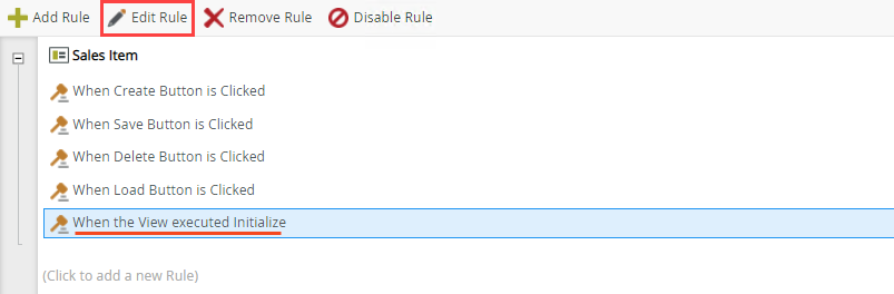 - Edit the view, go to the Rules tab and edit the default When the View executed Initialize rule.