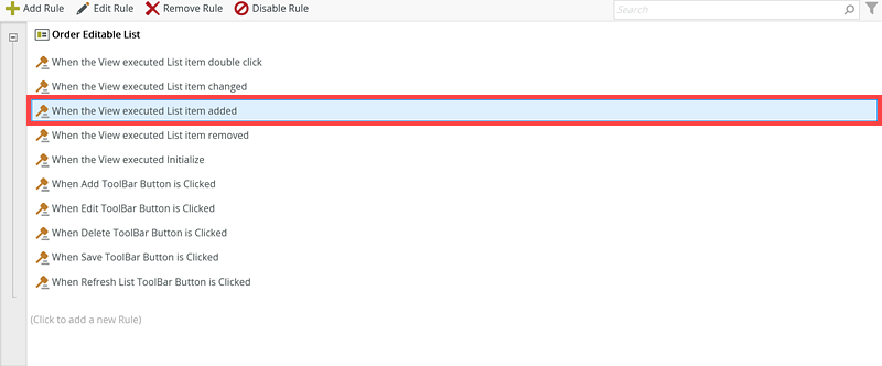 - Select the Rules tab and edit the When the View executed List item added rule.