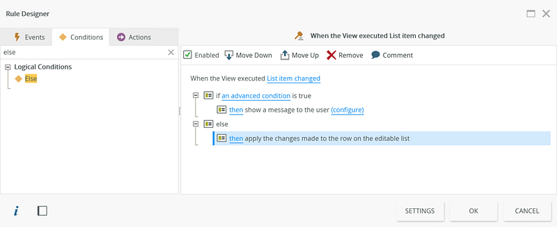 - Select the Conditions tab and add an Else condition to the rule as shown below. Click OK.