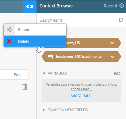 1. In the Context Browser click the Add link in the variables area