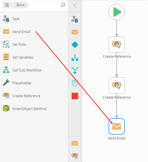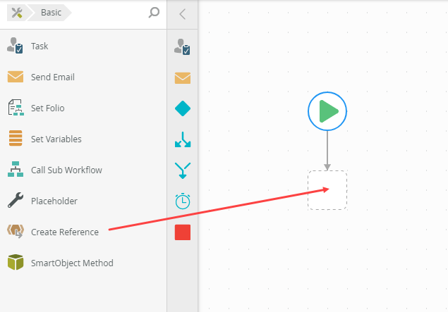 1. Drag a Create Reference step from the basic steps onto the design canvas