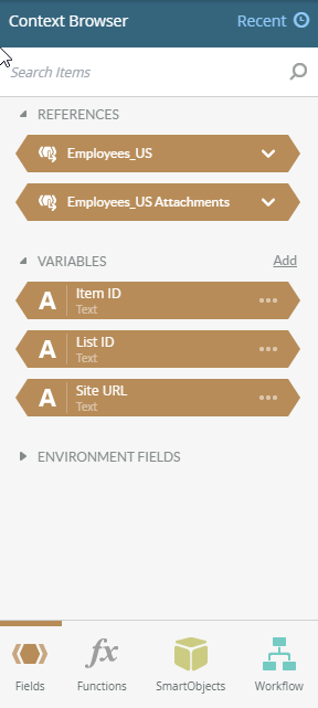6. Drag the ID field from the Employees_US SmartObject in the context browser to the Item ID workflow data field