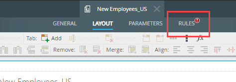 2. Select the Rules tab of the SmartForm. Note the red exclamation mark